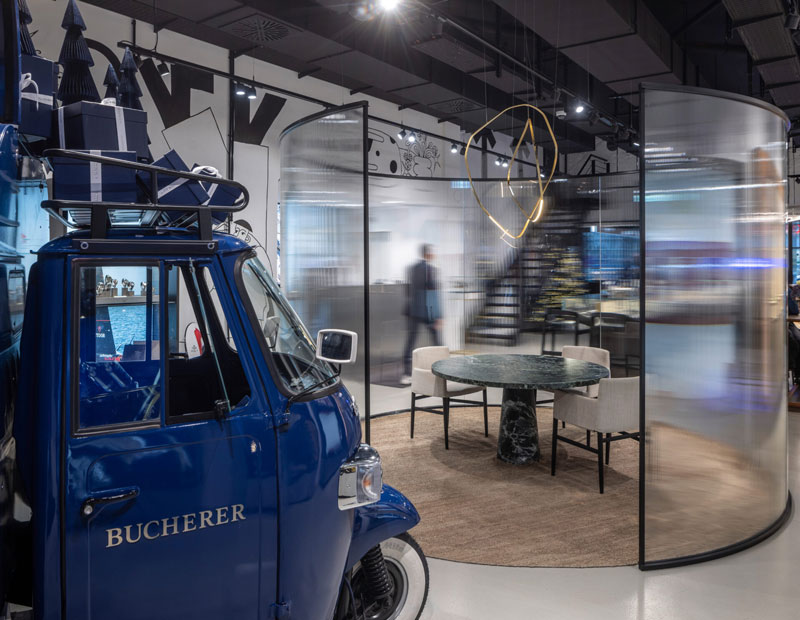 Während der Sanierungsarbeiten im Hauptgeschäftsgebäude benötigte der Juwelier Bucherer eine hochwertige temporäre Ausweichfläche. MMZ Architekten konzipierte und realisierte hierfür einen modernen PopUp Store in einer bestehenden Fläche. Das Konzept vereint mobile Vitrinen, flexible Präsentationsmodule und Gestaltungselemente des zukünftigen Flagship Stores, wie beispielsweise das neue Deckensystem.